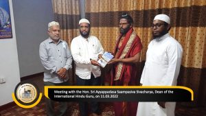 ජාත්යන්තර හින්දු ගුරු පීඨාධිපති ගරු ශ්රී අයියප්පදාස සාම්පසිව සිවාචාර්යතුමා සමග වූ හමුව Read More » මාර්තු 14, 2022