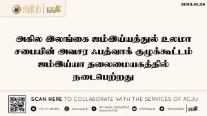 அகில இலங்கை ஜம்இய்யத்துல் உலமா சபையின் அவசர ஃபத்வாக் குழுக் கூட்டம் நடைபெற்றது Read More » தை 29, 2025