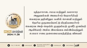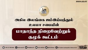 அகில இலங்கை ஜம்இய்யத்துல் உலமா சபையின் நிறைவேற்றுக் குழுக்கூட்டம் குழு உறுப்பினர்களின் பங்கேற்புடன் ஜம்இய்யாவின் தலைமையகத்தில் நடைபெற்றது Read More » மார்கழி 8, 2024