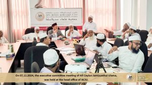 அகில இலங்கை ஜம்இய்யத்துல் உலமா சபையின் நிறைவேற்றுக் குழுக்கூட்டம் குழு உறுப்பினர்களின் பங்கேற்புடன் ஜம்இய்யாவின் தலைமையகத்தில் நடைபெற்றது Read More » கார்த்திகை 7, 2024
