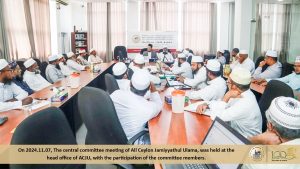 அகில இலங்கை ஜம்இய்யத்துல் உலமா சபையின் மத்திய குழுக்கூட்டம் குழு உறுப்பினர்களின் பங்கேற்புடன் ஜம்இய்யாவின் தலைமையகத்தில் இடம்பெற்றது Read More » கார்த்திகை 7, 2024