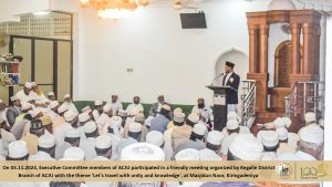 அகில இலங்கை ஜம்இய்யத்துல் உலமா சபையின் கேகாலை மாவட்டக் கிளையின் ஏற்பாட்டில் இடம்பெற்ற நட்புறவு ரீதியிலான ஒன்றுகூடலில் தலைமையக நிறைவேற்றுக்குழு உறுப்பினர்களும் பங்கேற்பு Read More » கார்த்திகை 5, 2024