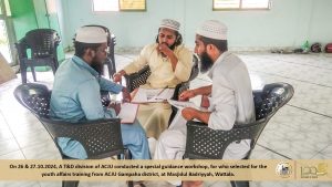 அகில இலங்கை ஜம்இய்யத்துல் உலமா சபையின் இளைஞர் விவகாரக் குழுவின் வழிகாட்டலில், பாணந்துறை கிளை ஜம்இய்யா மற்றும் ஜாமிஉல் ஹைராத் ஜுமுஆ மஸ்ஜித் நிர்வாகம் ஆகியன இணைந்து நடாத்திய இளைஞர்களுக்கான ‘வாழ்க்கைத் திறன் வழிகாட்டல் செயலமர்வு’ Read More » கார்த்திகை 11, 2024
