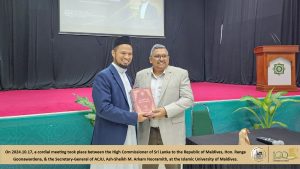 மாலைத்தீவின் இஸ்லாமிய விவகார அமைச்சர் கலாநிதி மொஹமத் ஷஹீம் அலி ஸஈத் மற்றும் அகில இலங்கை ஜம்இய்யத்துல் உலமாவின் பொதுச் செயலாளர் அஷ்-ஷைக் எம். அர்கம் நூராமித் ஆகியோரிடையே இடம்பெற்ற சிநேகபூர்வ சந்திப்பு Read More » ஐப்பசி 18, 2024
