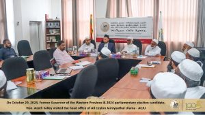 முன்னாள் மேல்மாகாண ஆளுநரும், புதிய ஜனநாயக முன்னணியின் நாடாளுமன்ற தேர்தல் வேட்பாளருமான அசாத் சாலி அவர்கள் அகில இலங்கை ஜம்இய்யத்துல் உலமா சபையின் தலைமையகத்திற்கு விஜயம் Read More » ஐப்பசி 29, 2024