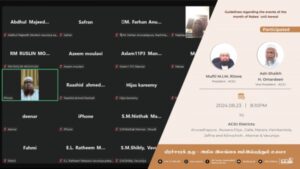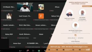 ஷமாஇலுத் திர்மிதியினை மக்கள் மயப்படுத்துவது தொடர்பில் அகில இலங்கை ஜம்இய்யத்துல் உலமாவின் பிரச்சாரக் குழு – ஜம்இய்யாவின் அம்பாறை, மட்டக்களப்பு, திருகோணமலை, முல்லைத்தீவு மாவட்ட மற்றும் பிரதேசக் கிளைகளிடையேயான ZOOM கலந்துரையாடல் Read More » ஆவணி 24, 2024