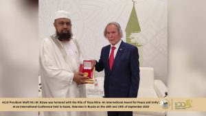 அகில இலங்கை ஜம்இய்யத்துல் உலமாவின் தலைவர் அஷ்ஷைக் முப்தி எம்.ஐ.எம். றிஸ்வி அவர்கள் ரஸ்ய நாட்டின் “ரோஸா மிரா” பட்டம் வழங்கி கௌரவிக்கப்பட்டார்கள். Read More » புரட்டாதி 22, 2023