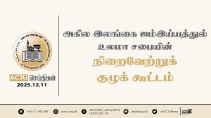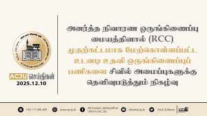 அனர்த்த முகாமைத்துவ நிலையத்தின் பணிப்பாளர் மற்றும் ACJU அனர்த்த நிவாரண ஒருங்கிணைப்பு மையத்தின் உறுப்பினர்கள் ஆகியோரிடையே நடைபெற்ற அவசர சந்திப்பு Read More » கார்த்திகை 30, 2025