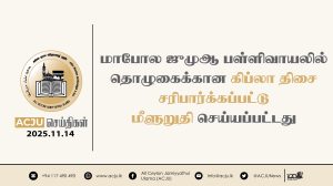 மாபோல ஜுமுஆ பள்ளிவாயலில் தொழுகைக்கான கிப்லா திசை சரிபார்க்கப்பட்டு மீளுறுதி செய்யப்பட்டது Read More » கார்த்திகை 14, 2025