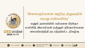 ‘இஸ்லாமிய நிர்வாகமும் முகாமைத்துவமும்’ எனும் தலைப்பில் மலேசியாவில் நடைபெற்ற இருவாரப் பயிற்சிநெறியில் அகில இலங்கை ஜம்இய்யத்துல் உலமா சபையின் பிரதிநிதிகள் பங்கேற்பு Read More » ஐப்பசி 19, 2025