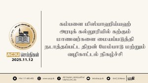 கம்பளை மிஸ்பாஹிய்யஹ் அரபுக் கல்லூரியில் கற்கும் மாணவர்களை மையப்படுத்தி நடாத்தப்பட்ட திறன் மேம்பாடு மற்றும் வழிகாட்டல் நிகழ்ச்சி Read More » கார்த்திகை 12, 2025
