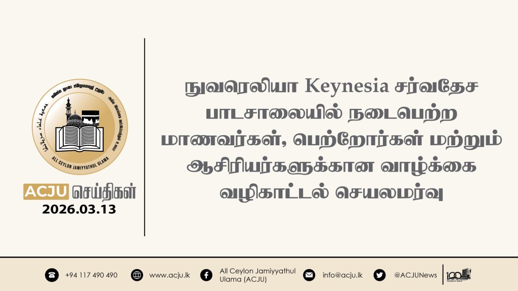 2026 மார்ச் 15ஆம் திகதி, அகில இலங்கை ஜம்இய்யத்துல் உலமாவின் இளைஞர் விவகாரப் பிரிவின் நெறிப்படுத்தலில் வட்டதெனிய மொஹிதீன் ஜுமுஆ பள்ளிவாயல் மஹல்லாவிற்குட்பட்ட க.பொ.த சாதாரண தரப் […]