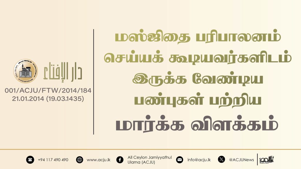 ஃபத்வா, வக்ப் மற்றும் மஸ்ஜித்மஸ்ஜிதை பரிபாலனம் செய்யக் கூடியவர்களிடம் இருக்க வேண்டிய பண்புகள் பற்றிய மார்க்க விளக்கம். தை 1, 2014