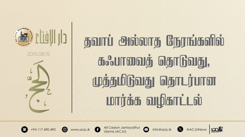 ஃபத்வா, ஹஜ் மற்றும் உம்ராதவாப் அல்லாத நேரங்களில் கஃபாவைத் தொடுவது, முத்தமிடுவது தொடர்பான மார்க்க வழிகாட்டல் ஆவணி 15, 2015