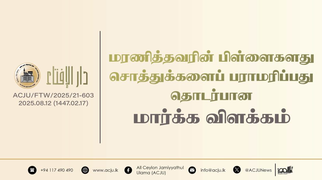 ஃபத்வா, வாரிசு உரிமைமரணித்தவரின் பிள்ளைகளது சொத்துக்களைப் பராமரிப்பது தொடர்பான மார்க்க விளக்கம் ஆவணி 12, 2025