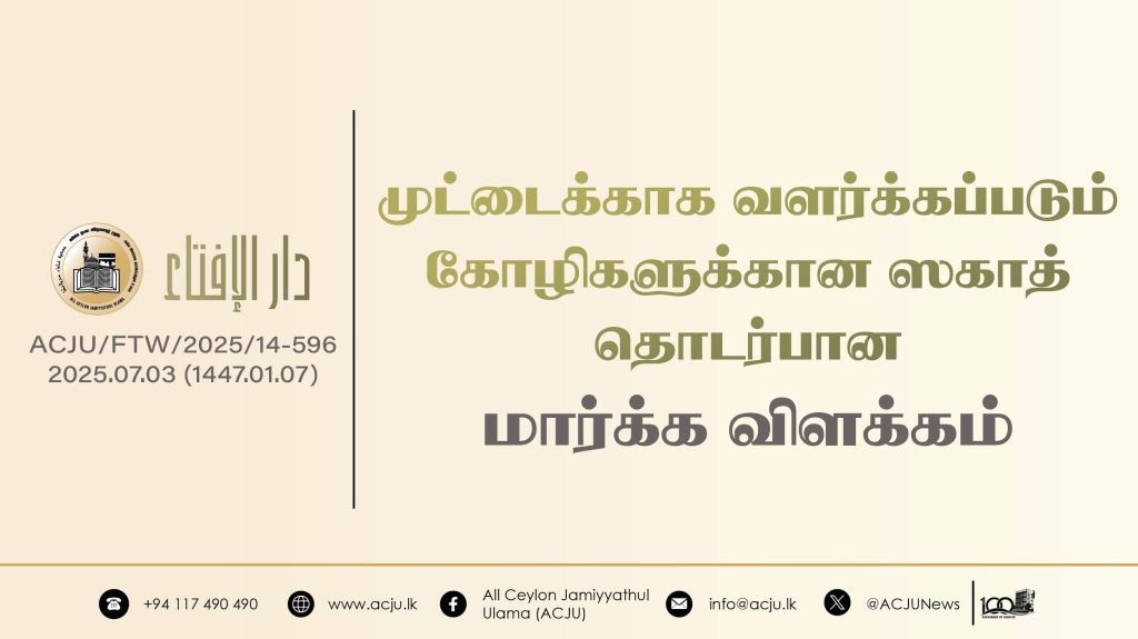 ஃபத்வா, ஸக்காத் - ஸதகாமுட்டைக்காக வளர்க்கப்படும் கோழிகளுக்கான ஸகாத் தொடர்பான மார்க்க விளக்கம் ஆடி 3, 2025