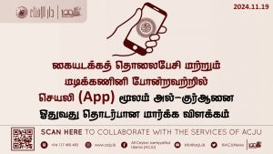 கையடக்கத் தொலைபேசி மற்றும் மடிக்கணினி போன்றவற்றில் செயலி (App) மூலம் அல்-குர்ஆனை ஓதுவது தொடர்பான மார்க்க விளக்கம் Read More »