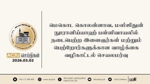 இந்நிகழ்வில், உரையாற்றிய ஜம்இய்யாவின் பொதுச் செயலாளர் அவர்கள், ஜம்இய்யாவினால் முன்னெடுக்கப்பட்டு வரும் பணிகள், முன்னெடுப்புகள் குறித்து தெளிவுபடுத்தியதுடன் ஆலிம்கள் சமூக பணிகளை எவ்வாறு திட்டமிடுவது என்பது பற்றியும் விளக்கமளித்தார்.