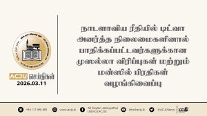 அல்லாஹ் அடக்குமுறைக்கு உள்ளாகியவர்களை பாதுகாத்தருள்வானாக! ஆக்கிரமிப்பாளர்களை கட்டுப்படுத்துவானாக! உலகத் தலைவர்களை நீதியின் பாதைக்கு வழிநடத்துவானாக! மனிதகுலத்திற்கு நிலையான அமைதியும் நிலைத்த தன்மையையும் அருள்வானாக!